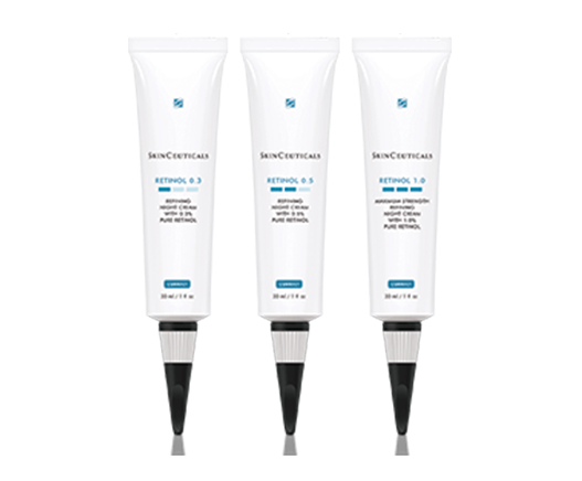 SkinCeuticals high-concentration retinol cream is available in three strengths and ideal for most skin types with visible aging concerns. Enhanced with the latest stabilization and delivery technologies to provide maximum efficacy, these retinol creams improve the appearance of fine lines, wrinkles, discoloration, skin texture, and blemishes with minimum sensitization.
